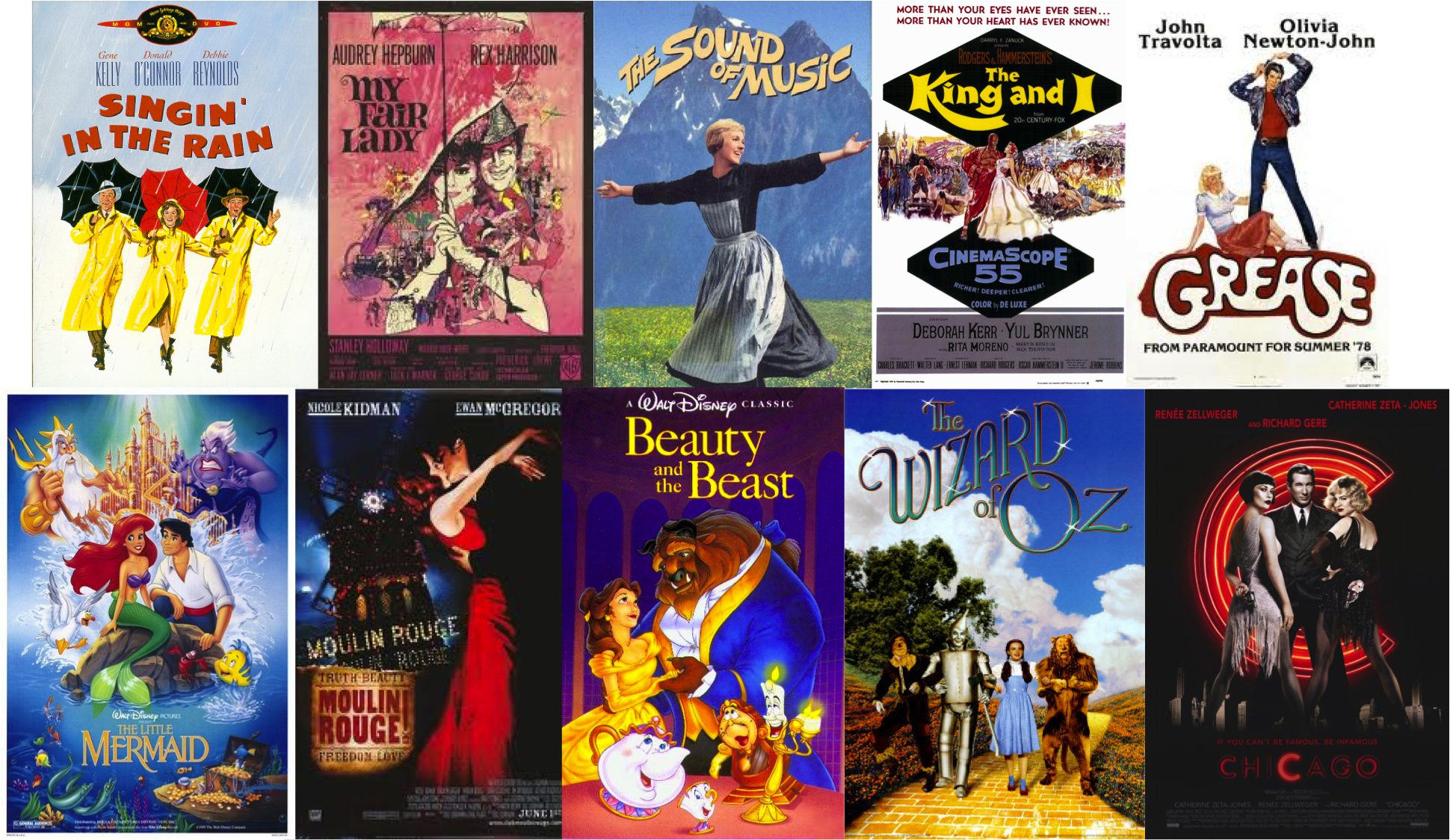 Making this list I realized I havent watch the following movies: Gigi, Funny Girl, Cabaret, West Side Story, even though I’ve seen shows of them. Shame on me I will watch them and report wether they crack the top 10.