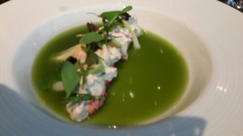 An absolutely beautiful dish – super balanced, light but packing great flavor! The soup was made of cucumber, and there was lobster two ways, in the form of a lobster salad, but also in actual chunks of lobster.