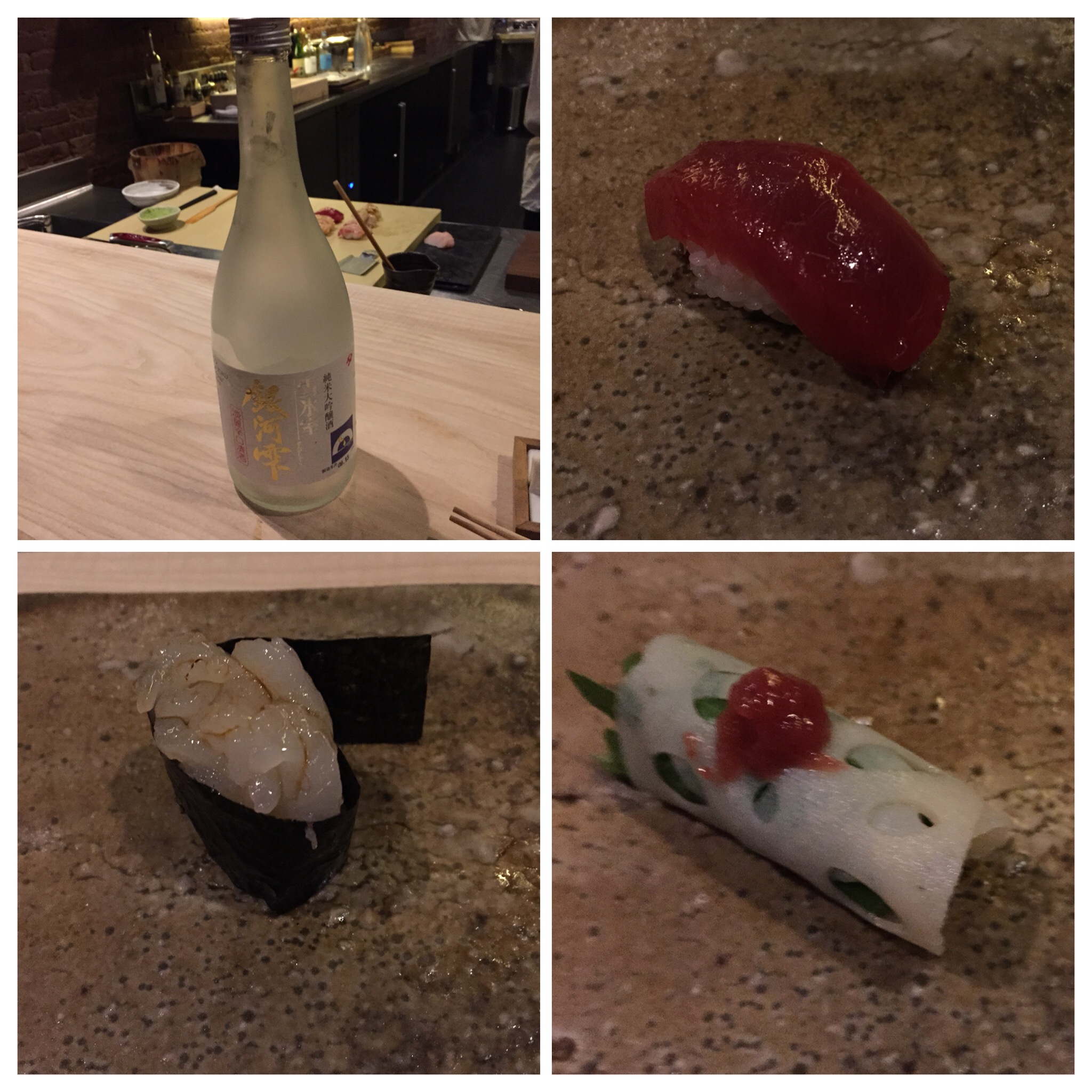 Shuko, a new restaurant from Chefs Nick Kim and Jimmy Lau, might be one of my new favorite restaurants in NY. Unlike Sushi Nakasawa which I went to in October and did not live up to the hype, this restaurant lives to all the hype it has and more. A very subtle entrance, with no sign or everything and a really small counter makes for an intimate meal. I had the Omakase with the Wagyu beef addition and it was all wonderful! The sake that we had was delicious, hence the picture to remember for ever π My only qualm with the meal, I mentioned I was gluten free and they said there was no issue, yet they served me a tempura roll. I called their attention to it and replaced it right away, but it is an oversight a restaurant of this caliber (and price point) should not make.
