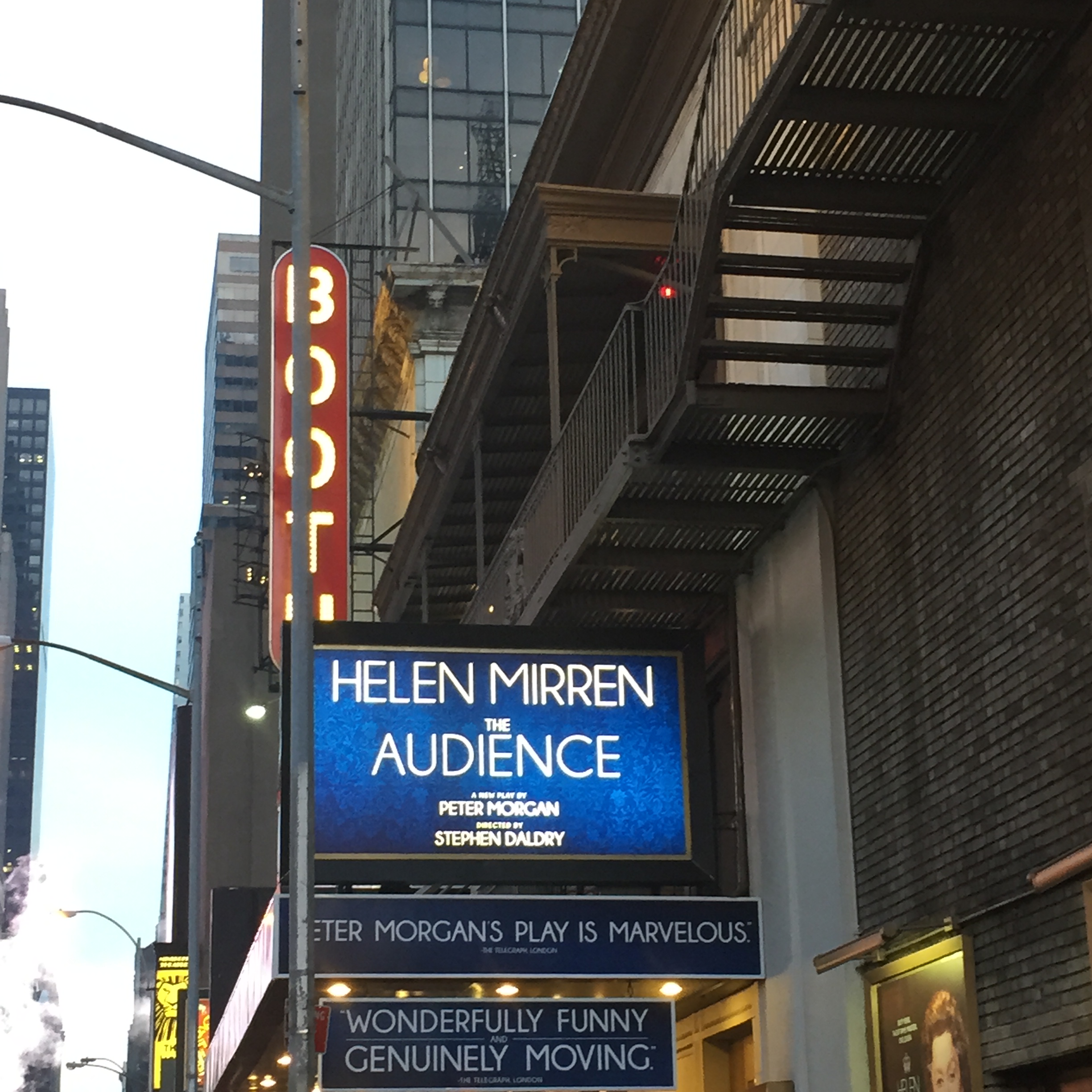 My Thoughts:The Audience is spectacular and a must watch. It really has all the elements. Of course the first and main draw is Helen Mirren recreating her Oscar winning role as the Queen of England. She doesn’t disappoint, she gives a tour de force performance. As good as she was she actually exceeded my expectations. She defies age in her role, acting as Queen Elizabeth aged 30-80ish and the changes are astounding and spectacular (mayor props to the hair design department!) . She truly embodies all the ages, which is no easy task. However, the play is not just some background for Helen Mirren to shine. Peter Morgan’s writing is superb. It is witty and engaging, and makes some dense political topic, intelligently smart. I laughed much more often than i was expecting to. I also have to commend the rest of the actors. They hold their own against Helen Mirren’s performance and that is not an easy thing to do! In short – if you get tickets run to see this, you will not be dissapointed. Side note: I would like to thank the producers for including in the playbill the handy guide to Britain’s Prime Ministers (also on the website). I am embarrassed to say it definitely filled some holes in my history, as The Winston Churchill to Margaret Thatcher time was a bit of a blur for me.