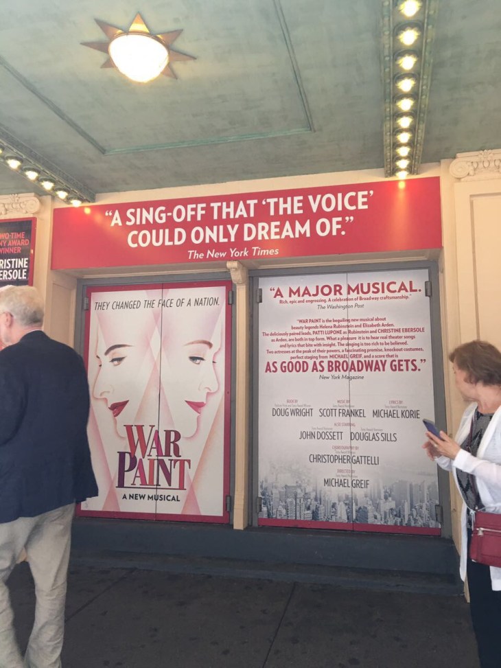 Official Blurb: “A MAJOR MUSICAL. RICH, EPIC AND ENGROSSING. A CELEBRATION OF BROADWAY CRAFTSMANSHIP.” The Washington PostTwo-time Tony Award-winning legends Patti LuPone and Christine Ebersole join forces to portray the trailblazing cosmetic icons who built empires in a business world ruled by men.From the creators of Grey Gardens and the director of Rent and Next to Normal, WAR PAINT tells the remarkable story of Helena Rubinstein and Elizabeth Arden—fierce rivals who defined 20th Century beauty. In creating an industry, they reinvented themselves and revolutionized how the world saw women.