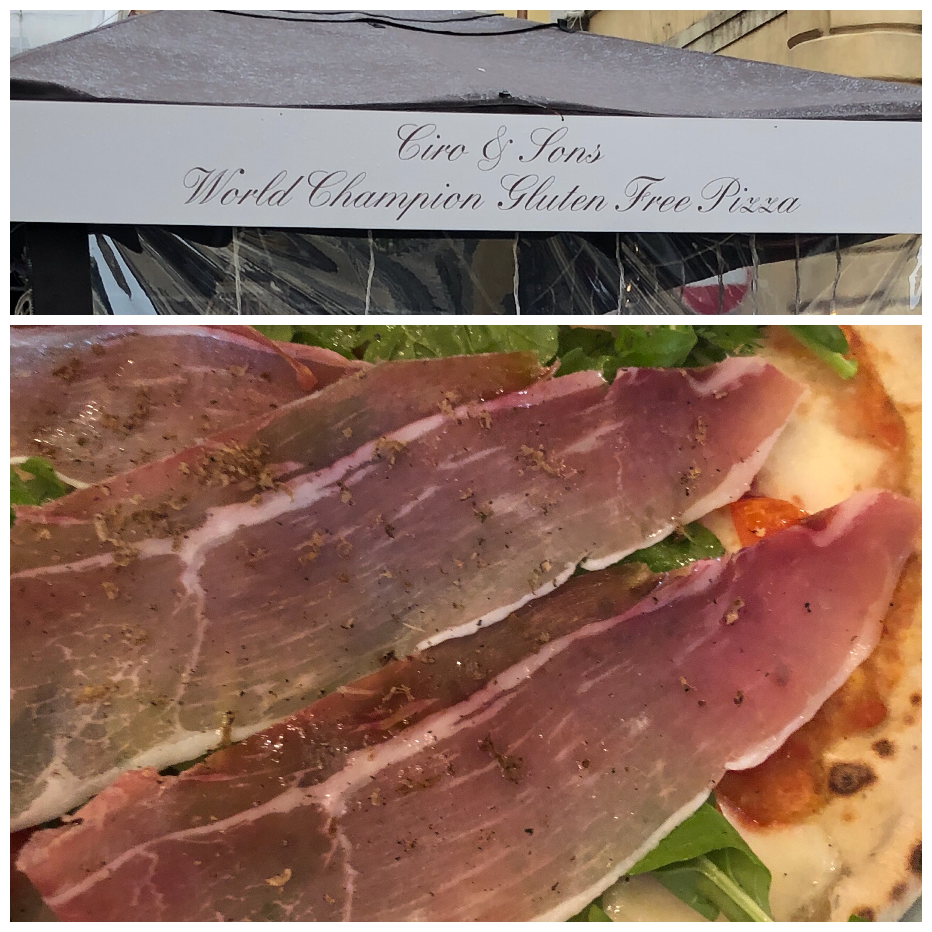 1 pm when you are walking around you see a sign that says world champion gluten free pizza- you have to walk in and try it. Ciro and Sons did not disappoint it was excellent.