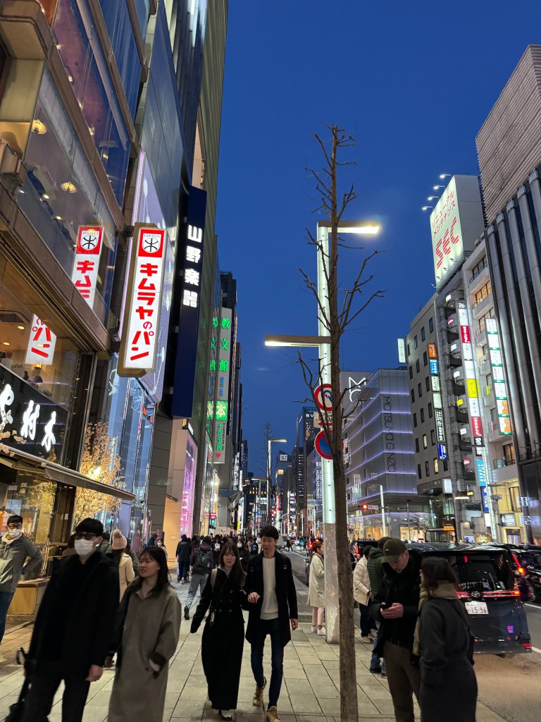 Finishing up the day walking in Ginza, stopping at the Mikimoto store (because i had to go) and the Uniqlo store …