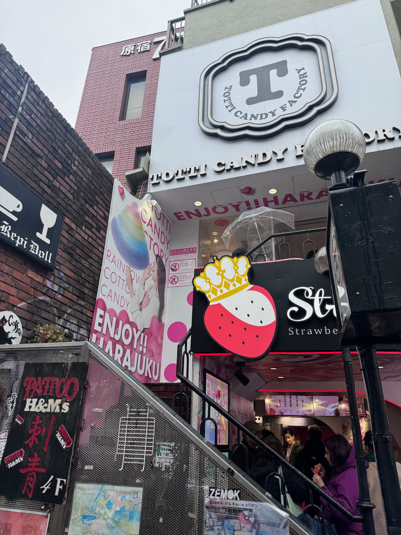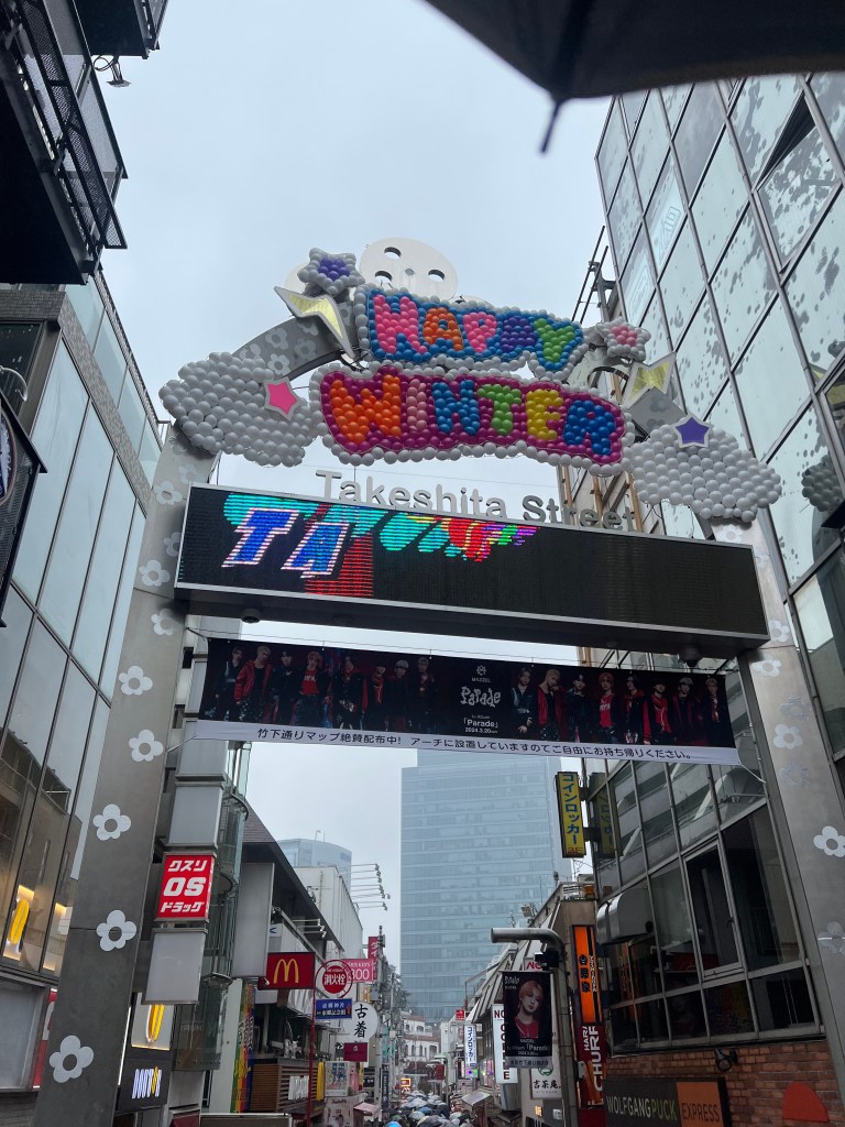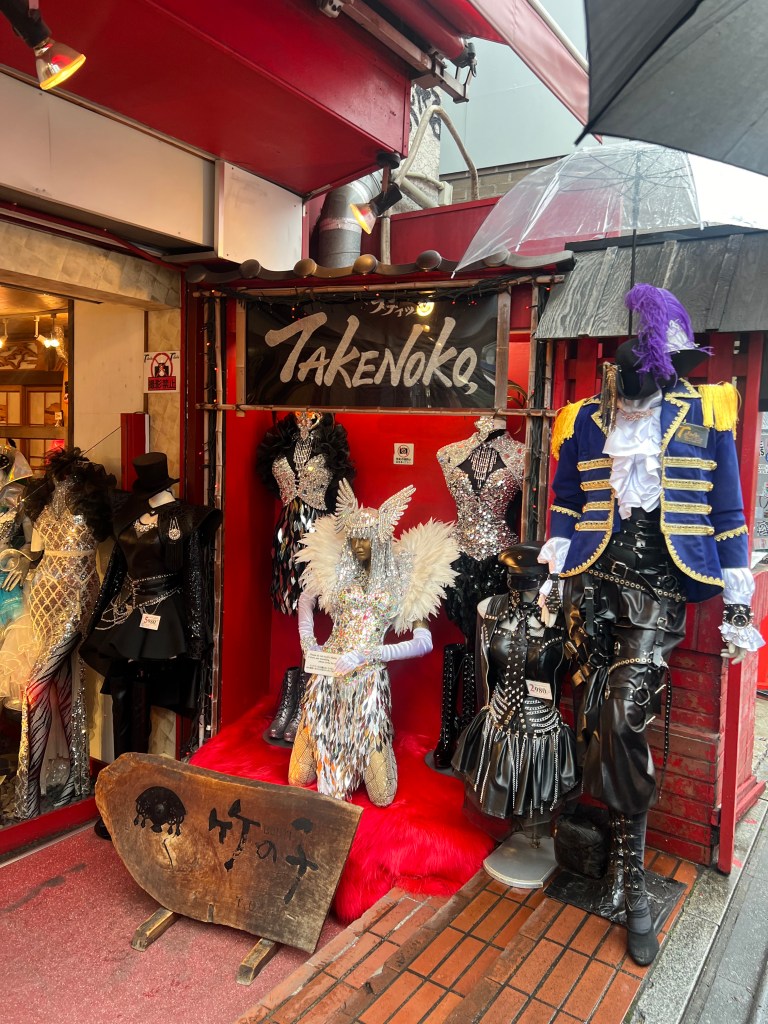 This was a day for Tokyo under the rain. We started off our umbrella adventure in Harakuru, checking out Takeshita street. Some Sanrio and souvenir stops were a must but I have to say my favorite was the store Takenoko. No pictures were allowed but i took this clandestine one at the entrance. So many cool costumes