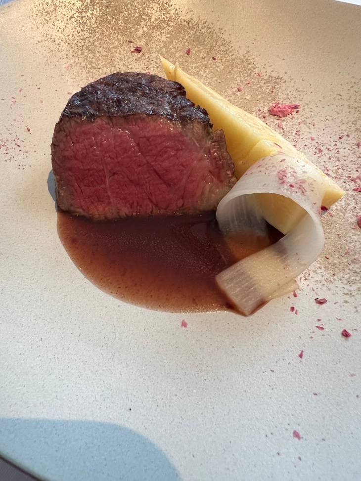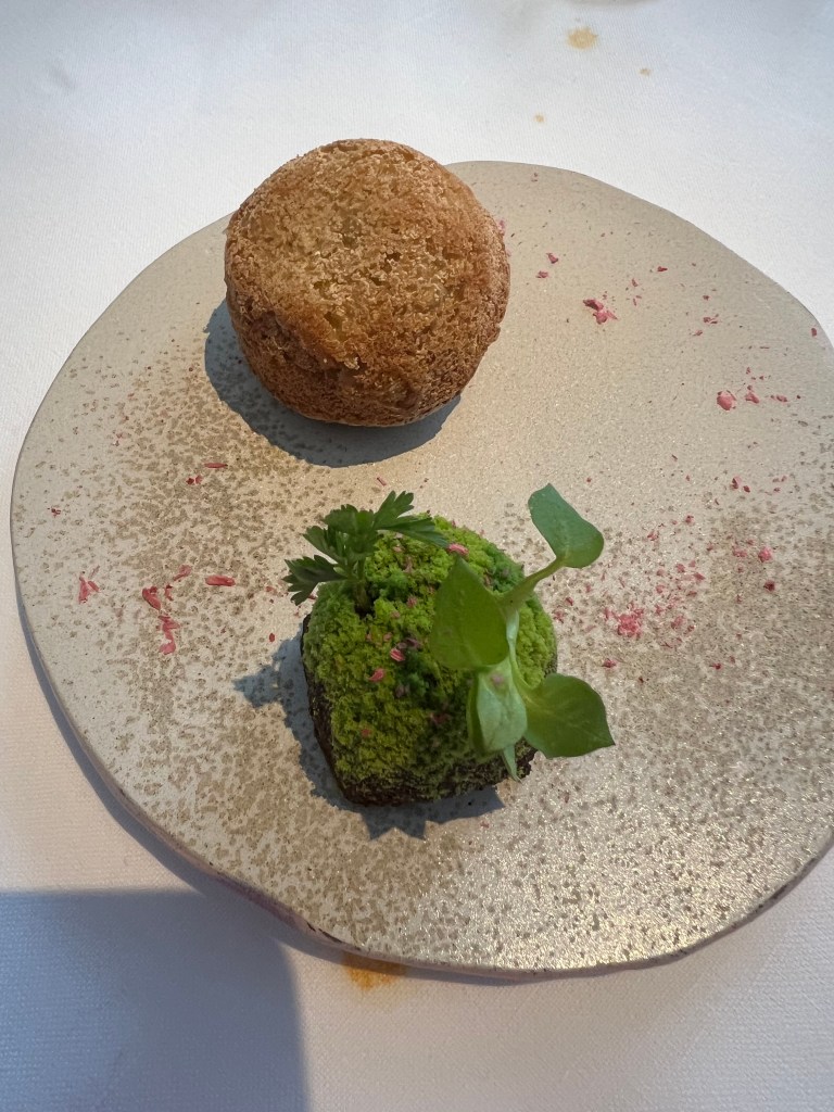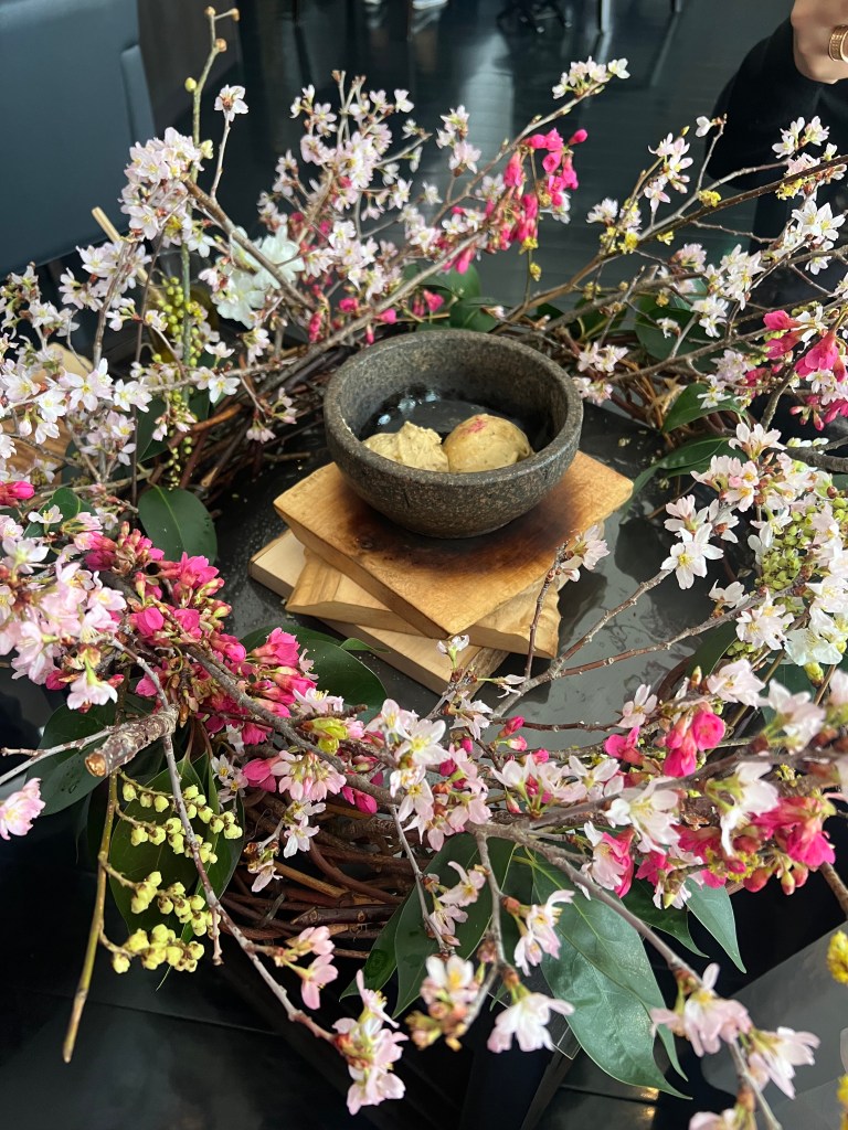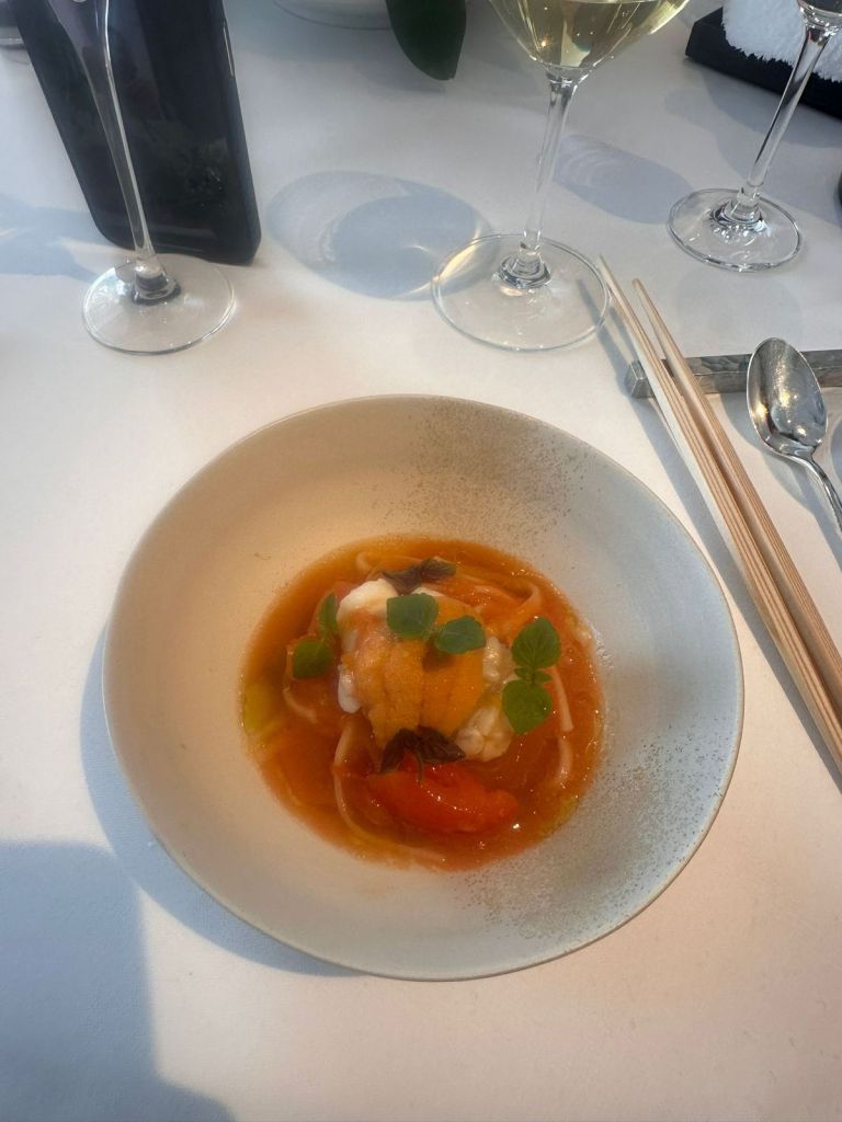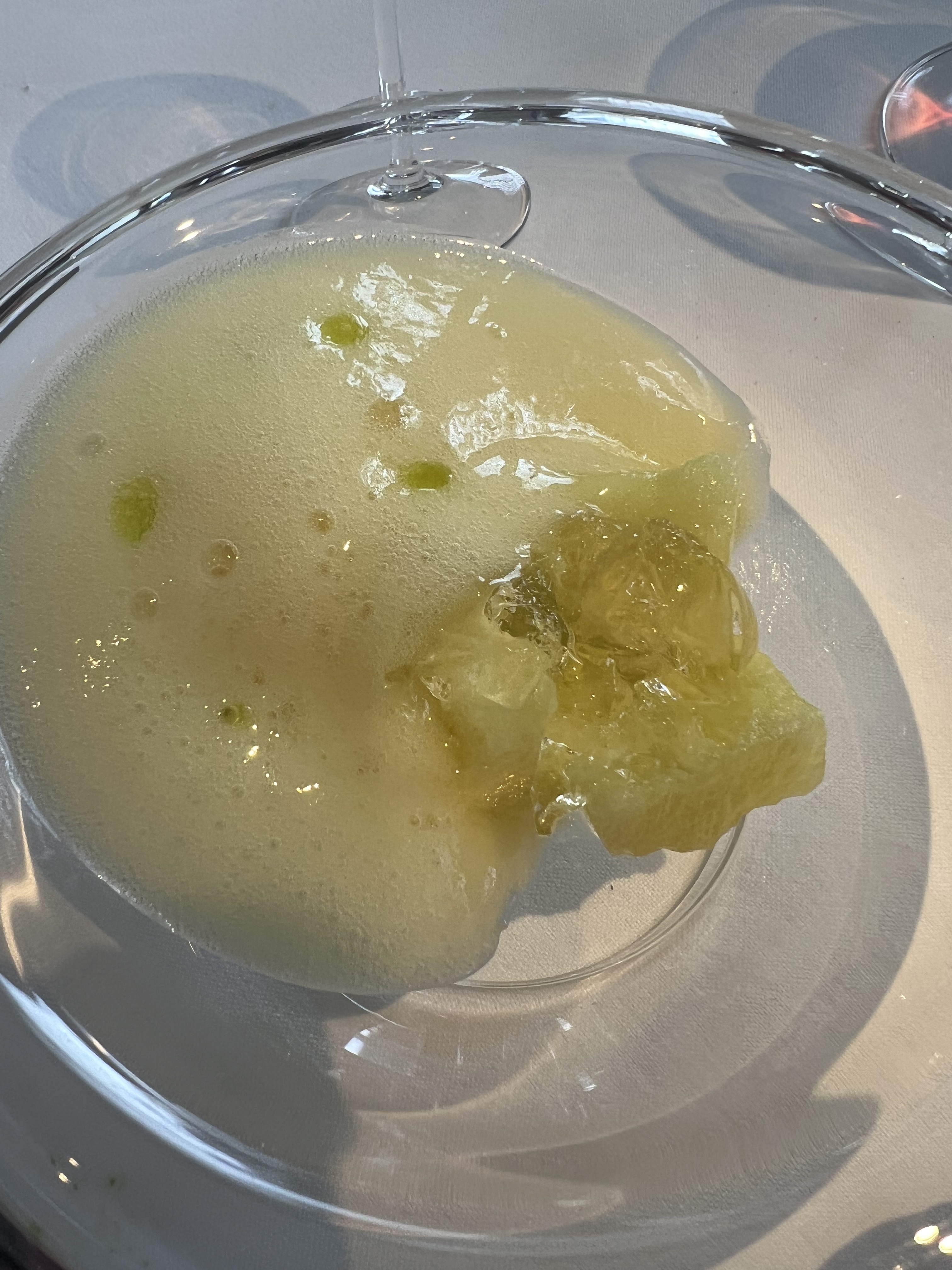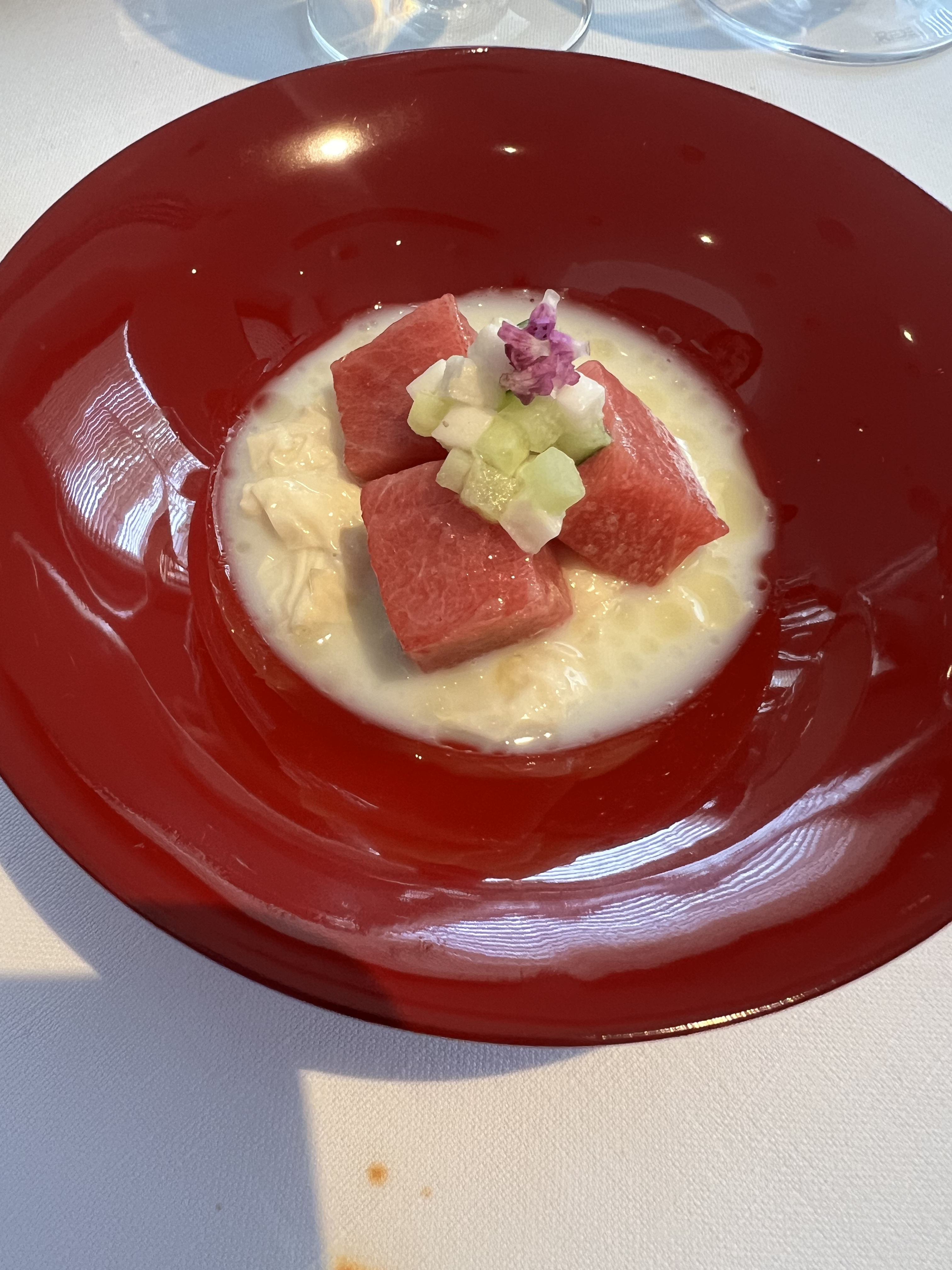 Melon – so the 100 dollar canteloupe is amazing and had been a dessert staple in all the other restaurants. Here it is elevated in like 4 different textures of melon, so good