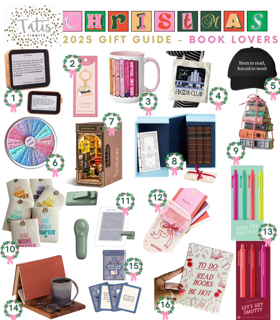 I brought back the guide for book lovers, which I had also done in 2018 and 2024. These are gifts for those who are book lovers that are not books. As always a book is always a fabulous idea for a gift for a book lover, and you will find plenty of inspiration on books in this blog. Or just gift a book of the month/ a bookstore gift certificate and people will be very happy (librofm is a great indie alternative for audiobooks if you don’t want to go the amazon route). But here some fun ideas.