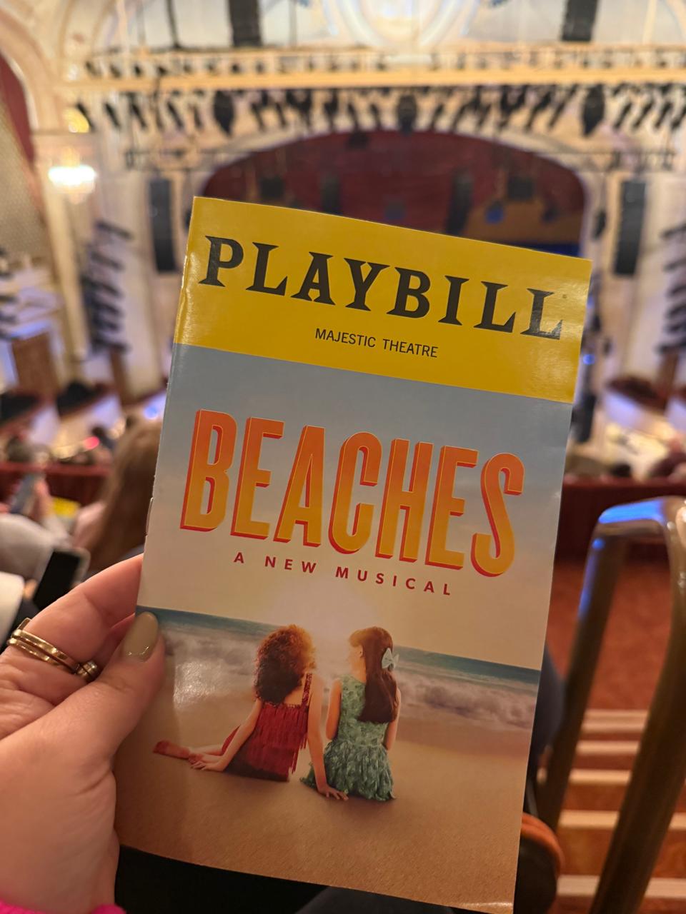 Official blurb: Beaches is a classic new musical with feelings big enough for Broadway.Based on the best-selling novel that became the blockbuster film, this sweeping story follows the vivacious Cee Cee (Jessica Vosk) and elegant Bertie (Kelli Barrett), who meet as children and form an unshakeable bond. Over the course of their 30-year friendship, these unlikely soulmates find joy, humor, and heartbreak in a pour-your-heart-out production that’s made to be shared. With an original score by the GRAMMY®-winning songwriter of “Stand By Me,” “Hound Dog,” and “Jail House Rock” – and, of course, an electrifying performance of “Wind Beneath My Wings” – Beaches is a laugh-till-you-cry new musical about the friends who carry us through life